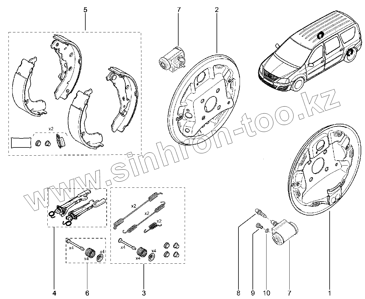 Каталог запасных частей к технике: ВАЗ LADA Largus. 344110. Тормоз задний (деталировка)