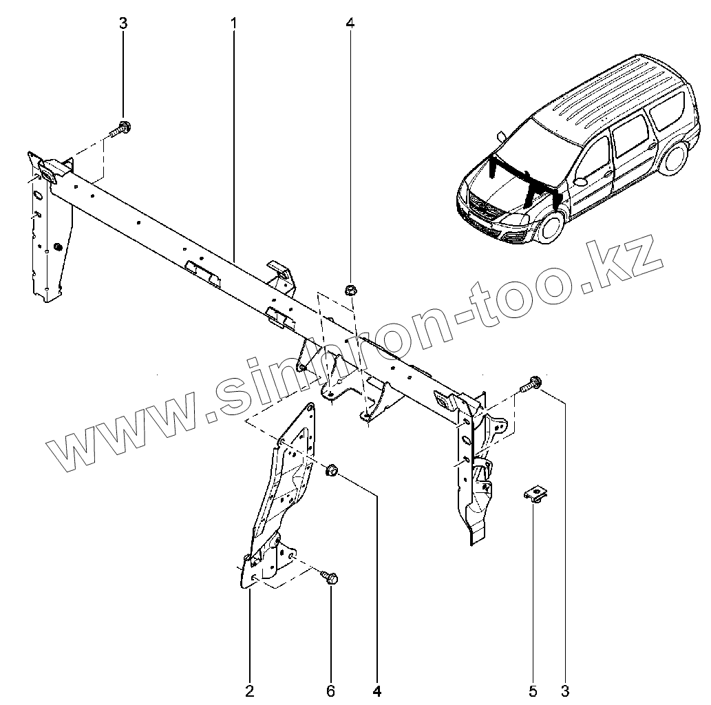 Каталог запасных частей к технике: ВАЗ LADA Largus. 422110. Поперечина панели приборов