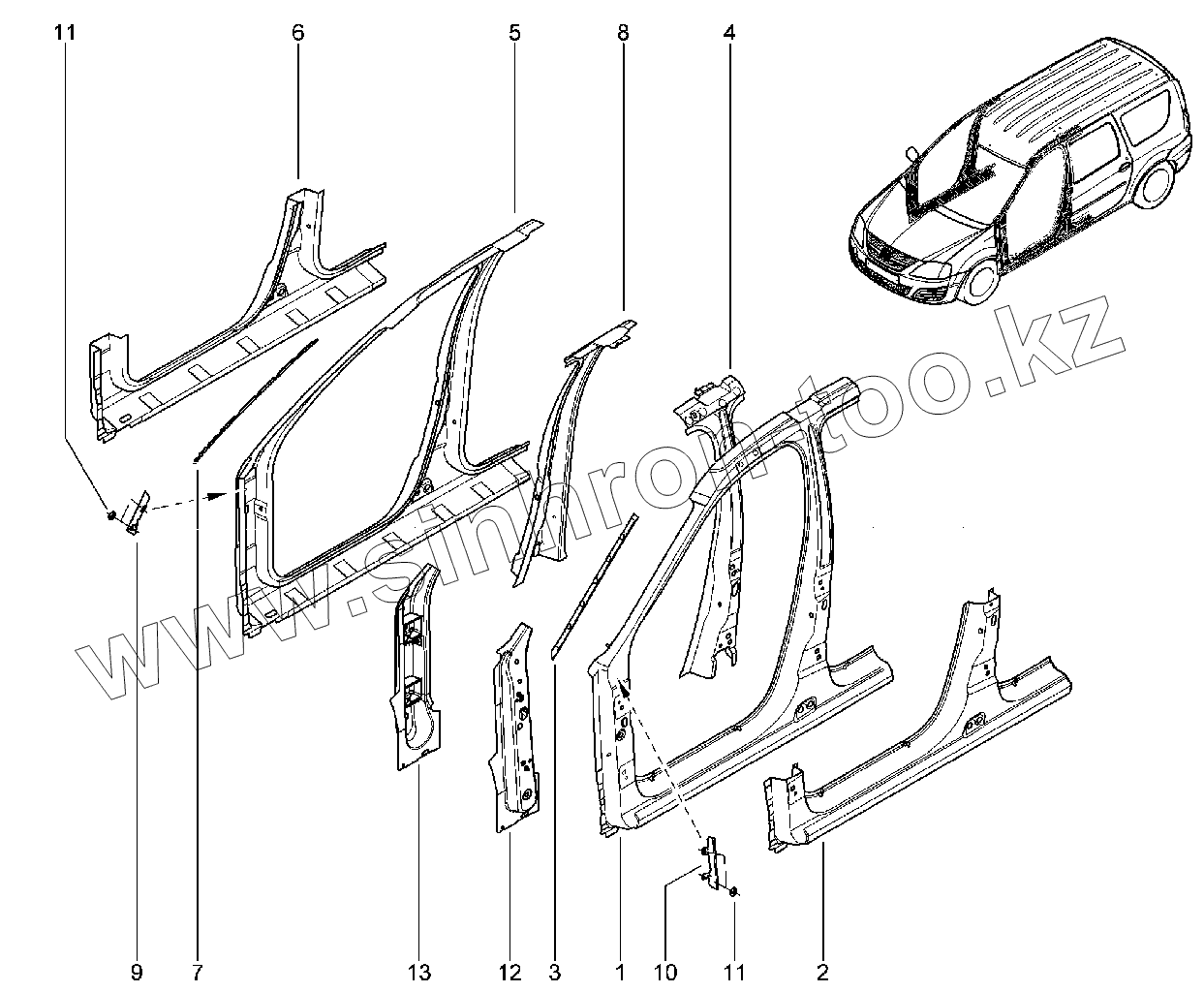 Каталог запасных частей к технике: ВАЗ LADA Largus. 431110. Элементы передней боковины кузова