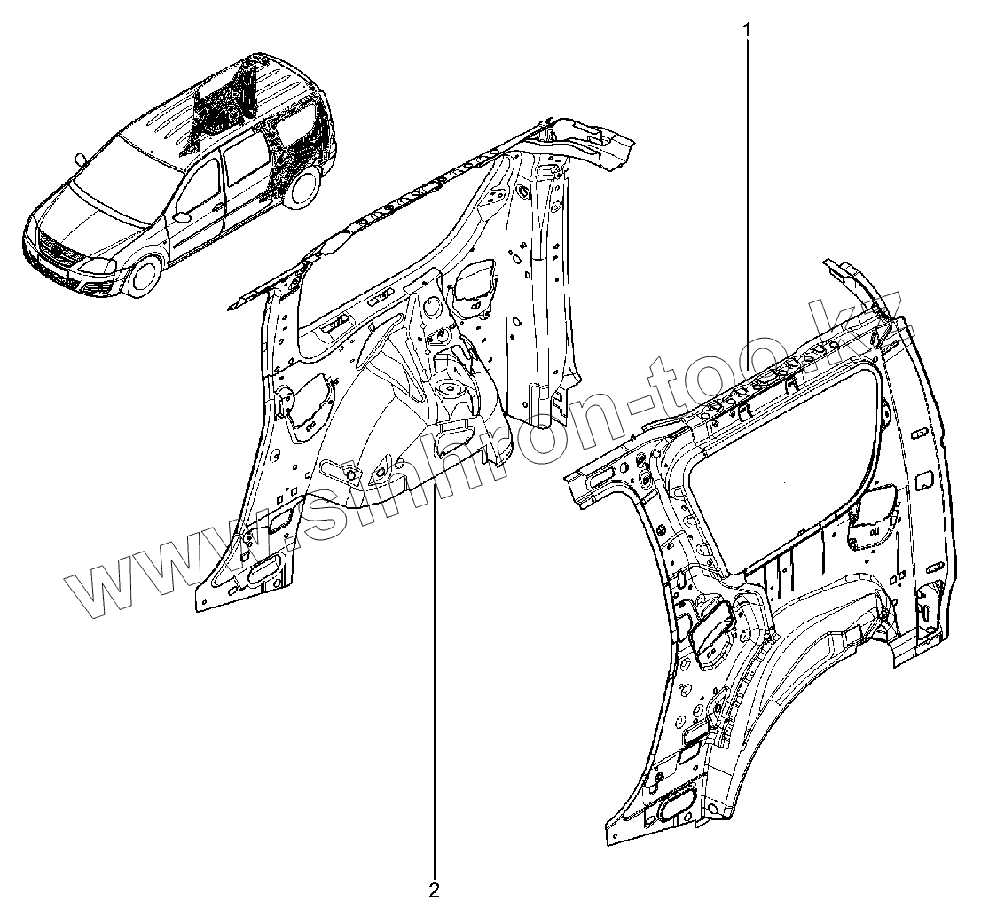 Каталог запасных частей к технике: ВАЗ LADA Largus. 441110. Каркас задней боковины