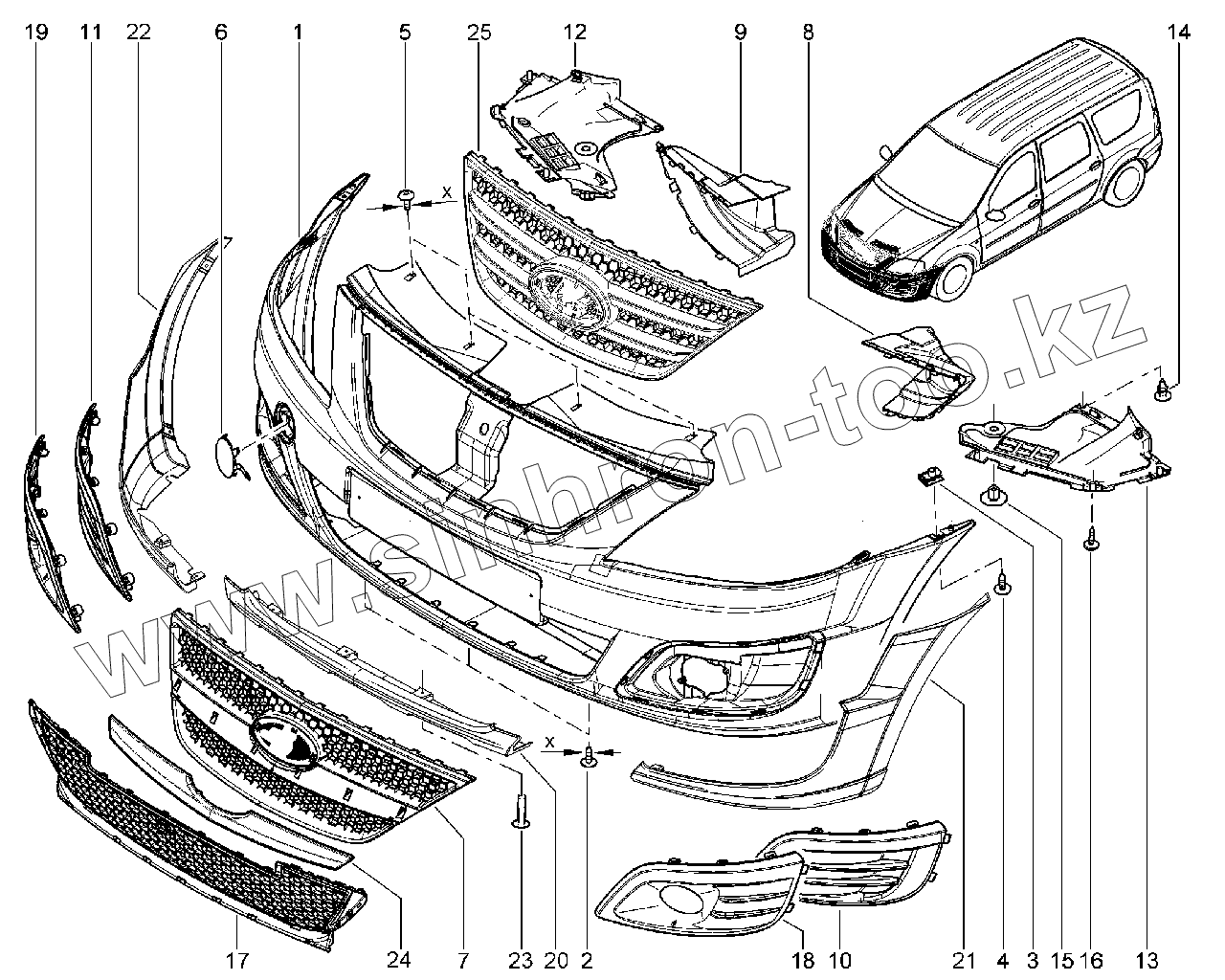 Каталог запасных частей к технике: ВАЗ LADA Largus. 500110. Бампер передний