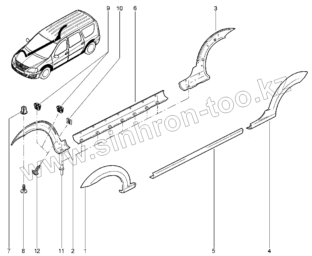Каталог запасных частей к технике: ВАЗ LADA Largus. 504110. Накладки (Cross)