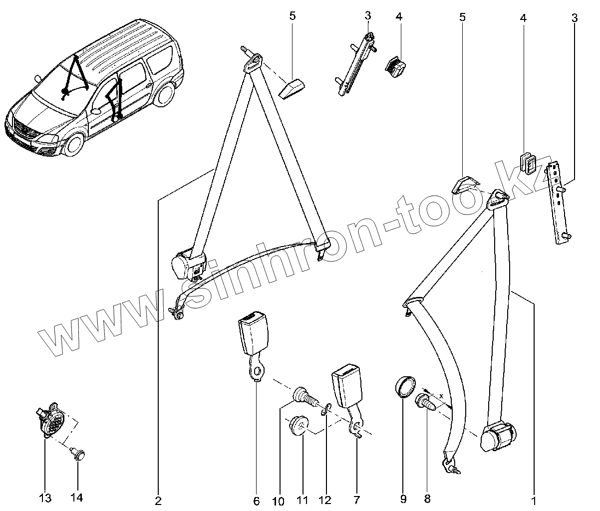 Каталог запасных частей к технике: ВАЗ LADA Largus. 550110. Ремни безопасности передние
