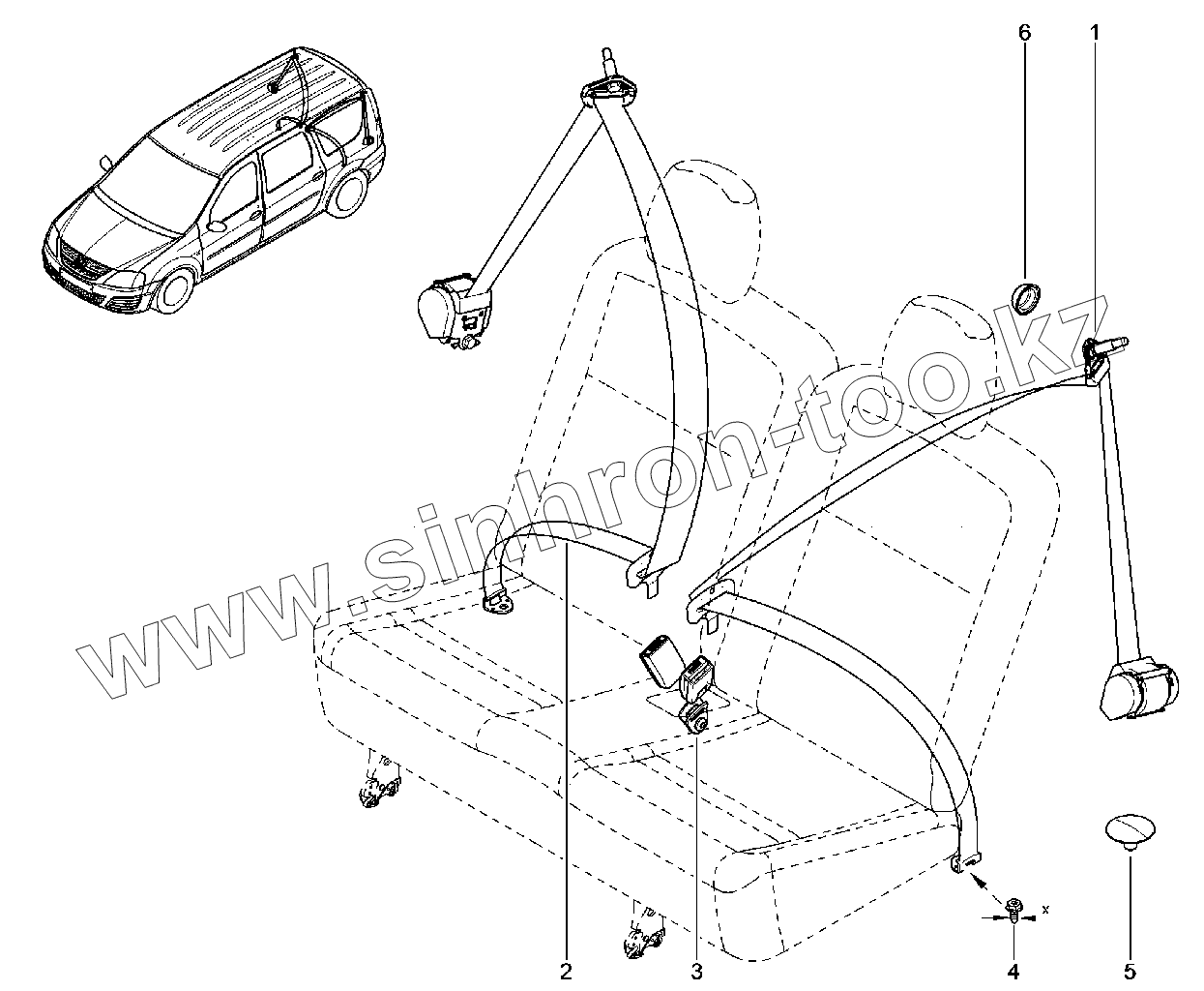 Каталог запасных частей к технике: ВАЗ LADA Largus. 552110. Ремни безопасности 3-го ряда