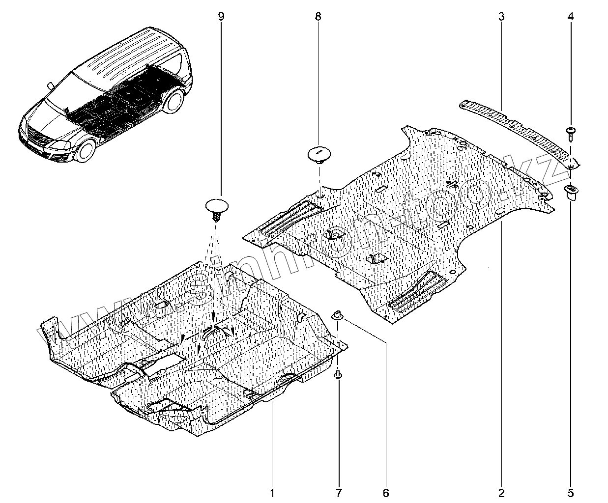 Каталог запасных частей к технике: ВАЗ LADA Largus. 561110. Ковер пола (универсал)