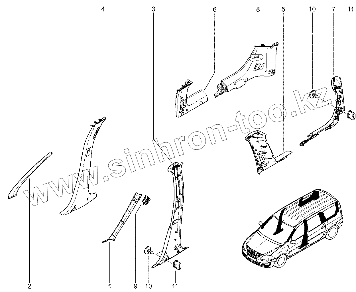 Каталог запасных частей к технике: ВАЗ LADA Largus. 570110. Накладки стоек (универсал)