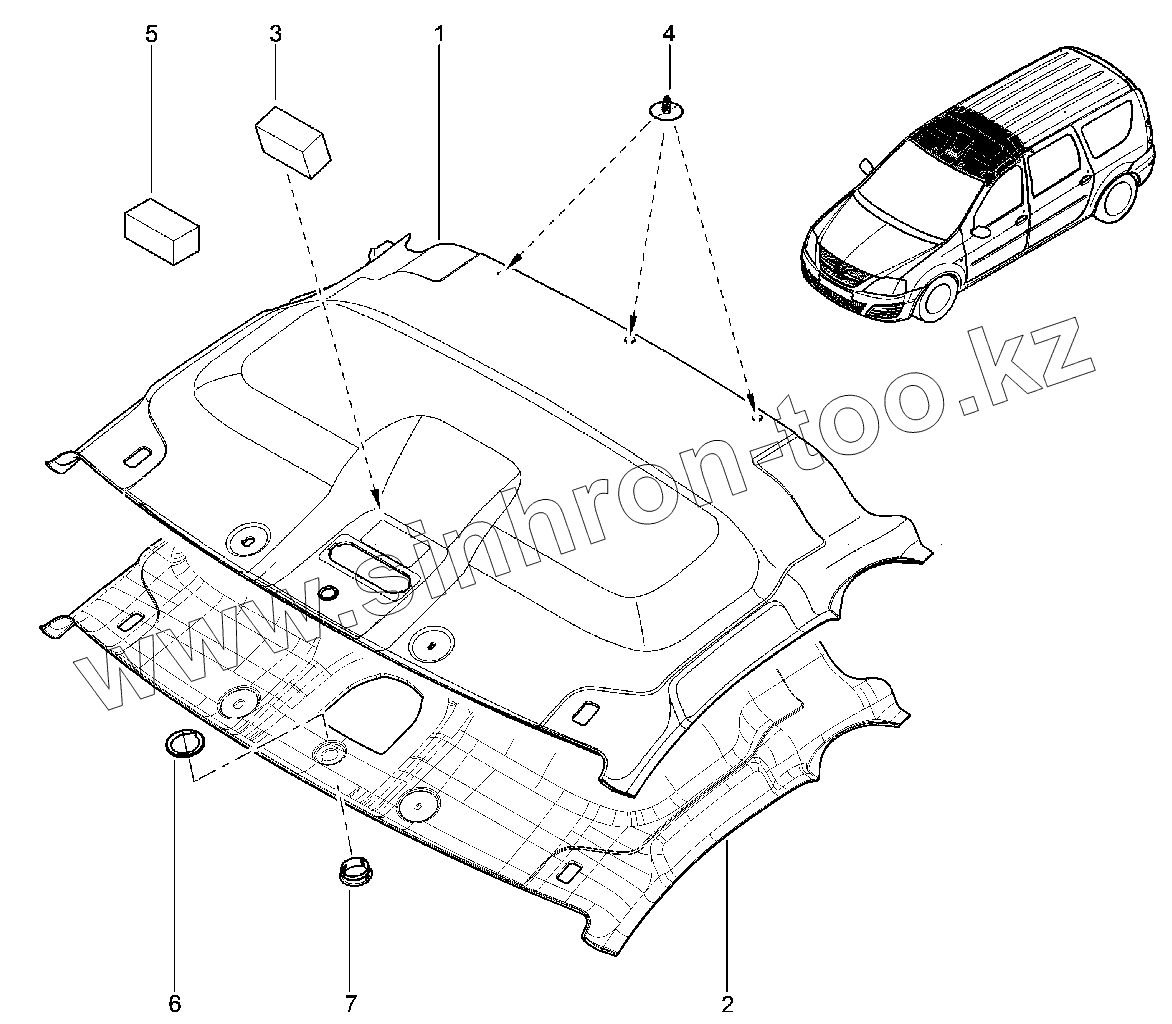 Каталог запасных частей к технике: ВАЗ LADA Largus. 572210. Обивка крыши (фургон)