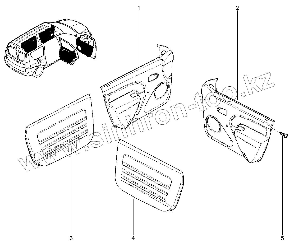 Каталог запасных частей к технике: ВАЗ LADA Largus. 573410. Обивки дверей (FL) (фургон)