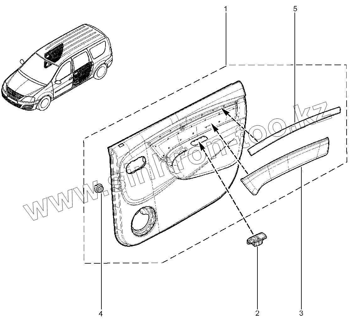 Каталог запасных частей к технике: ВАЗ LADA Largus. 574210. Обивка задней двери (FL)