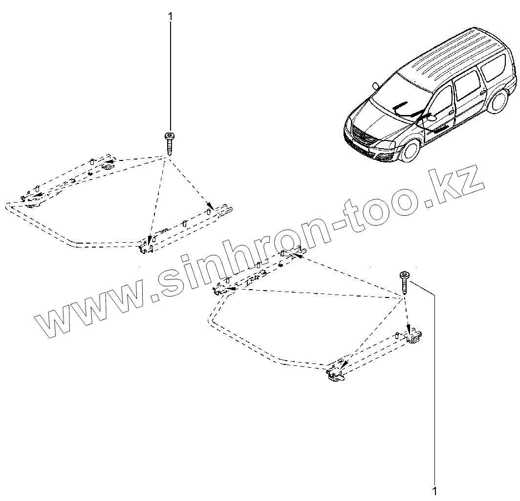 Каталог запасных частей к технике: ВАЗ LADA Largus. 722110. Крепление салазок