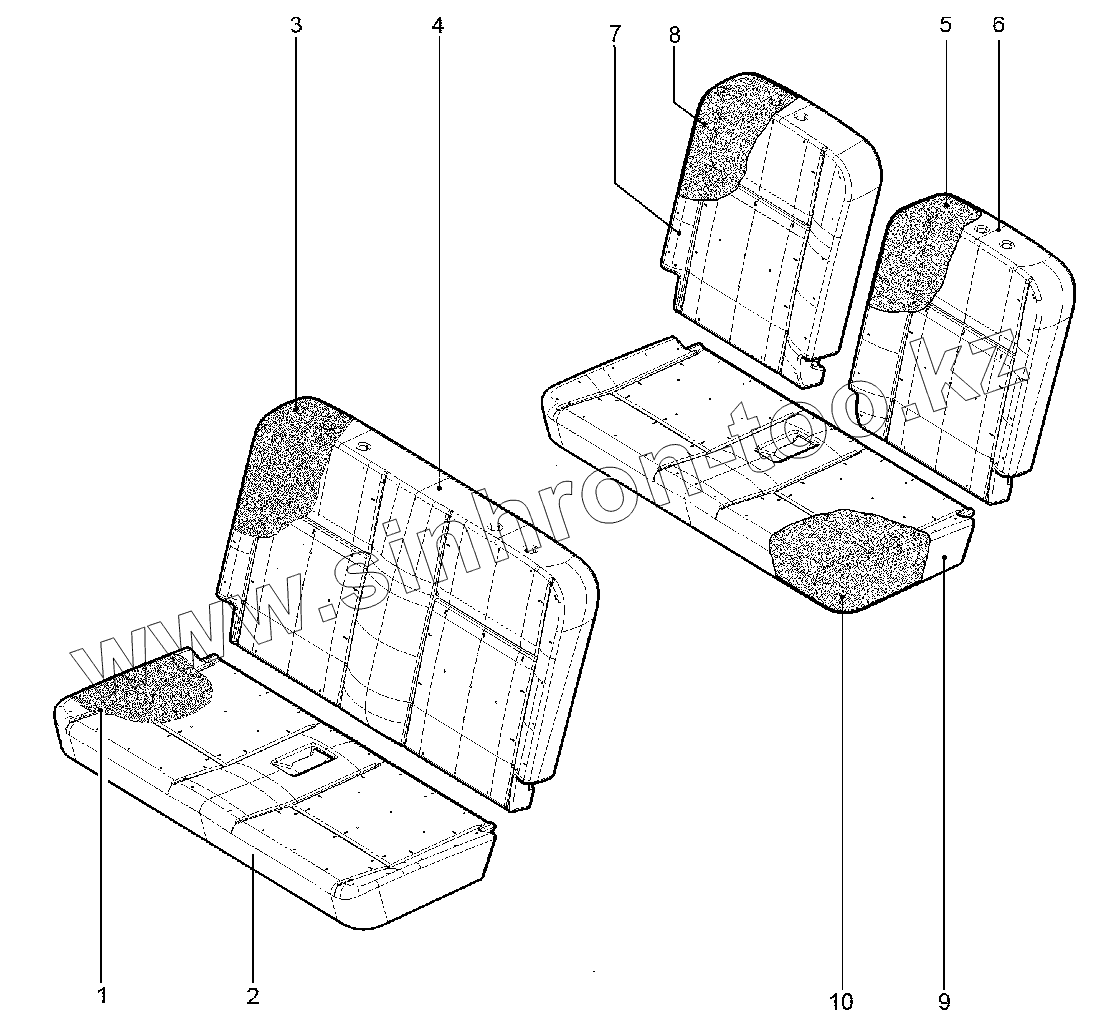 Каталог запасных частей к технике: ВАЗ LADA Largus. 742110. Обивка, набивка сидений третьего ряда