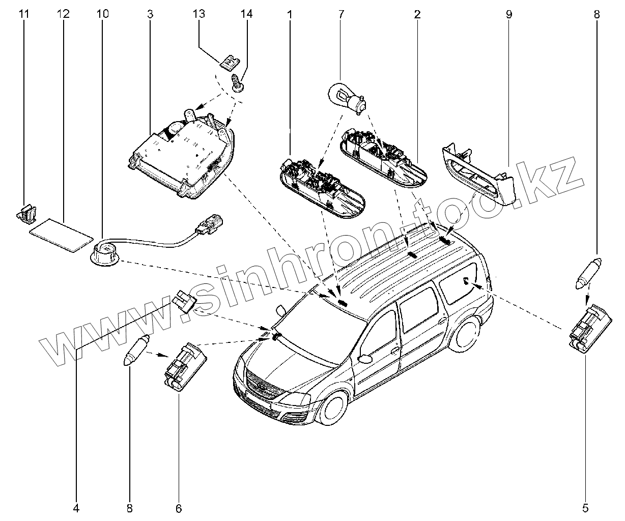 Каталог запасных частей к технике: ВАЗ LADA Largus. 806110. Плафоны освещения салона