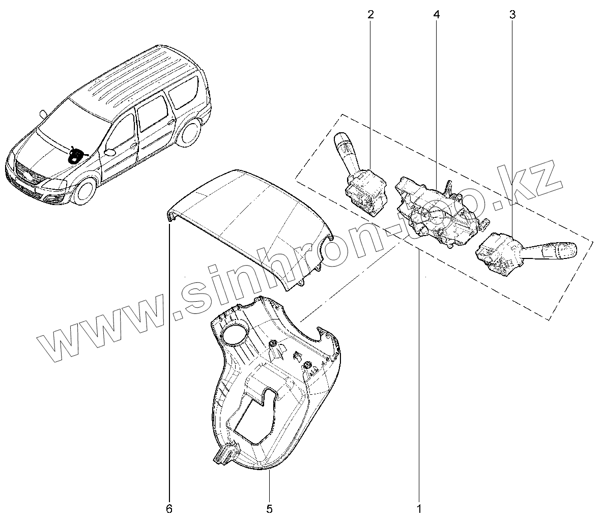 Каталог запасных частей к технике: ВАЗ LADA Largus. 812310. Модуль подрулевых преключателей (FL)