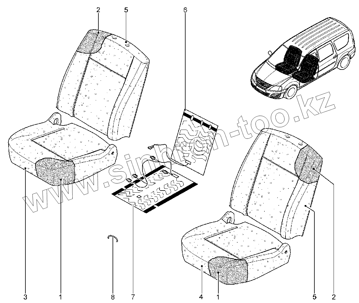 Каталог запасных частей к технике: ВАЗ LADA Largus. Обивка, набивка, обогрев сидений первого ряда