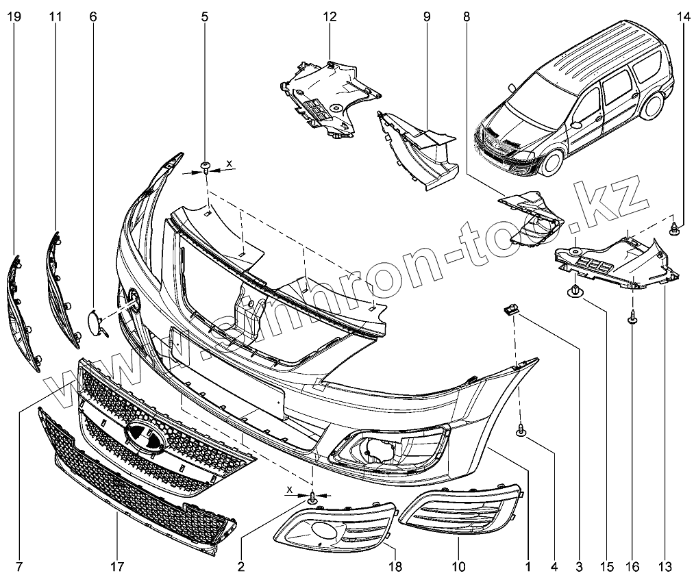 Каталог запасных частей к технике: ВАЗ LADA Largus 4601. Бампер передний