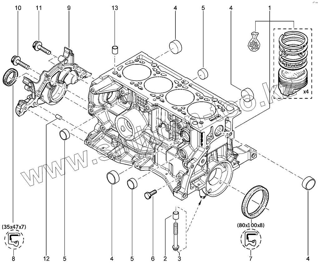 Каталог запасных частей к технике: ВАЗ LADA Largus 4601. Блок цилиндров (8 КЛ)