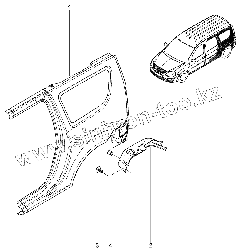 Каталог запасных частей к технике: ВАЗ LADA Largus 4601. Боковина задняя левая
