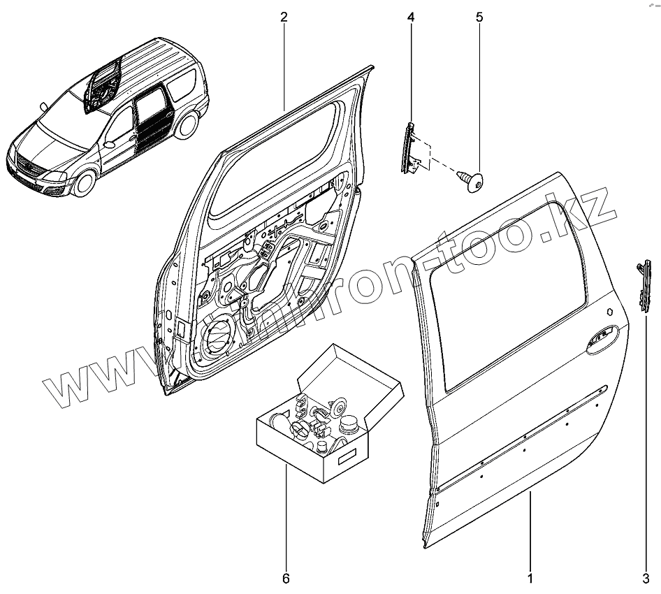 Каталог запасных частей к технике: ВАЗ LADA Largus 4601. Двери задние