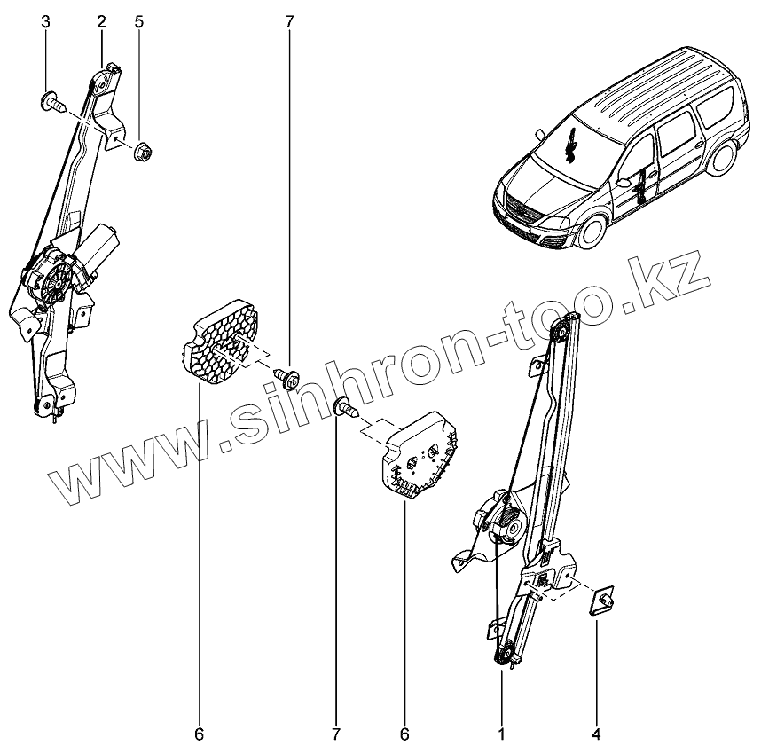 Каталог запасных частей к технике: ВАЗ LADA Largus 4601. Электрический стеклоподъемник передних дверей