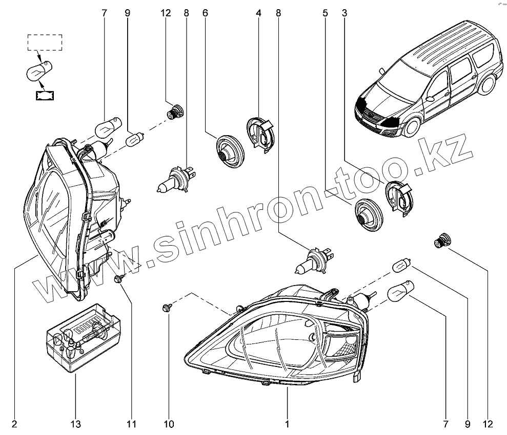 Каталог запасных частей к технике: ВАЗ LADA Largus 4601. Фары передние