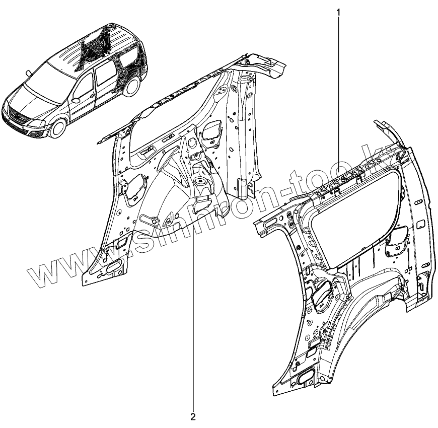 Каталог запасных частей к технике: ВАЗ LADA Largus 4601. Каркас боковины внутренний