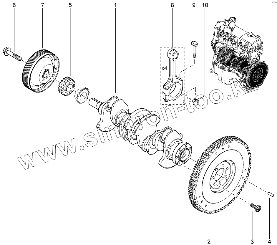Каталог запасных частей к технике: ВАЗ LADA Largus 4601. Коленвал, маховик (8 КЛ)