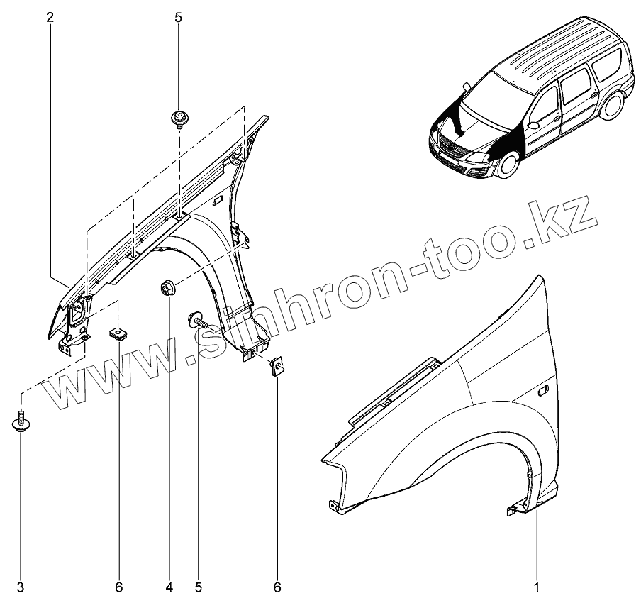 Каталог запасных частей к технике: ВАЗ LADA Largus 4601. Крылья передние
