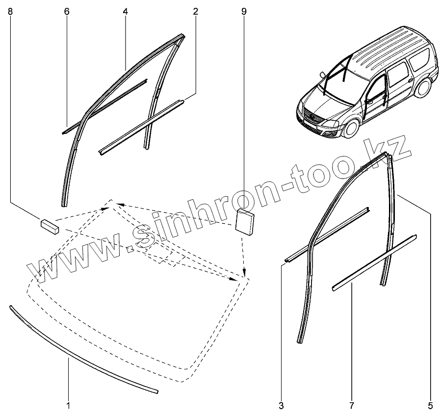 Каталог запасных частей к технике: ВАЗ LADA Largus 4601. Направляющие передних стекол