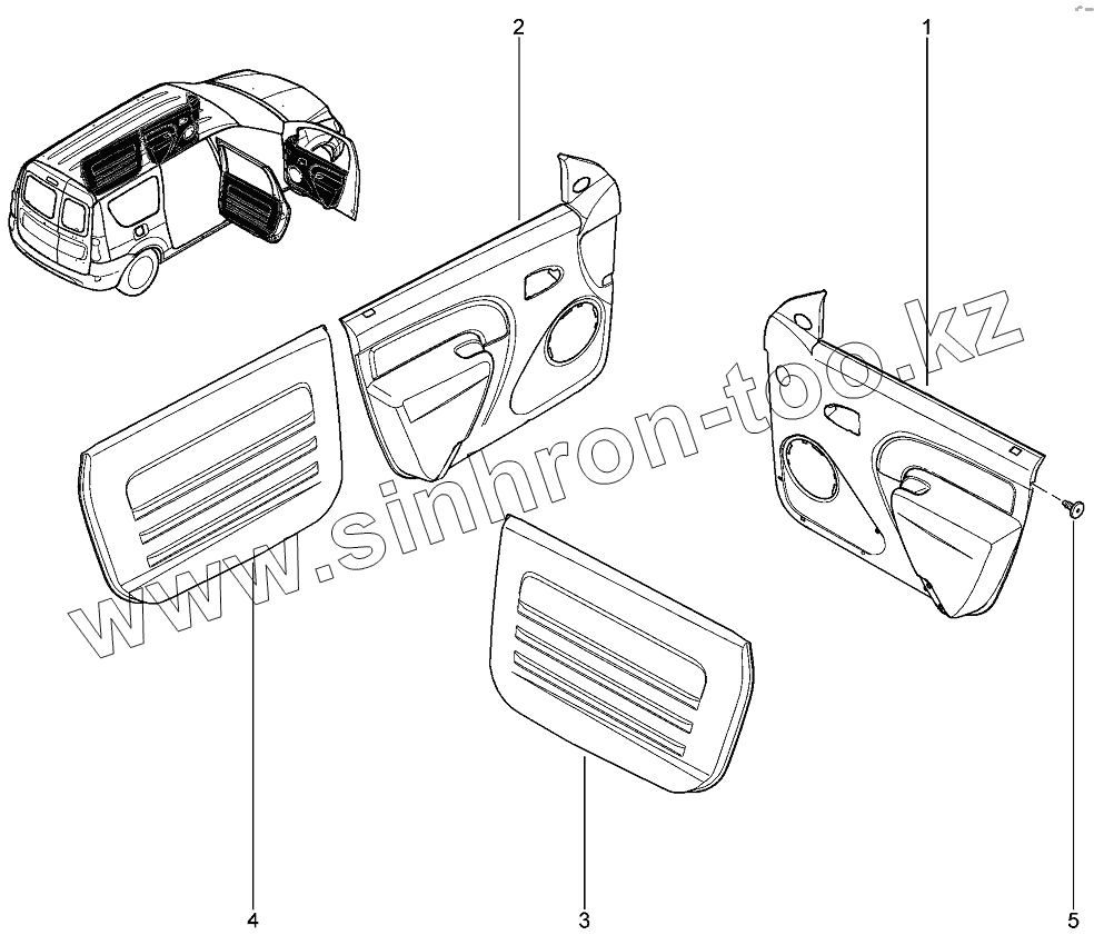 Каталог запасных частей к технике: ВАЗ LADA Largus 4601. Обивка дверей