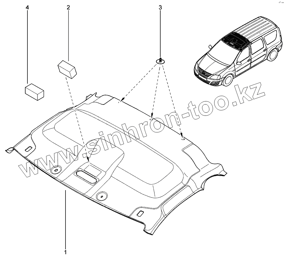 Каталог запасных частей к технике: ВАЗ LADA Largus 4601. Обивка потолка передняя