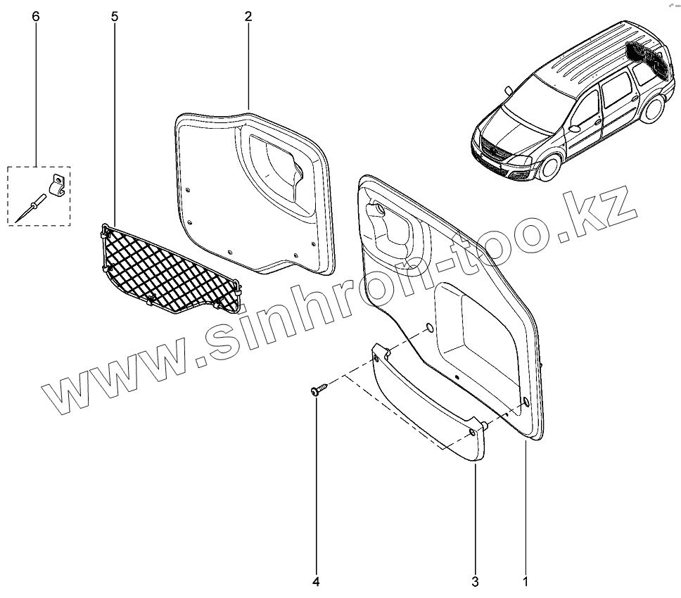 Каталог запасных частей к технике: ВАЗ LADA Largus 4601. Обивка задних дверей