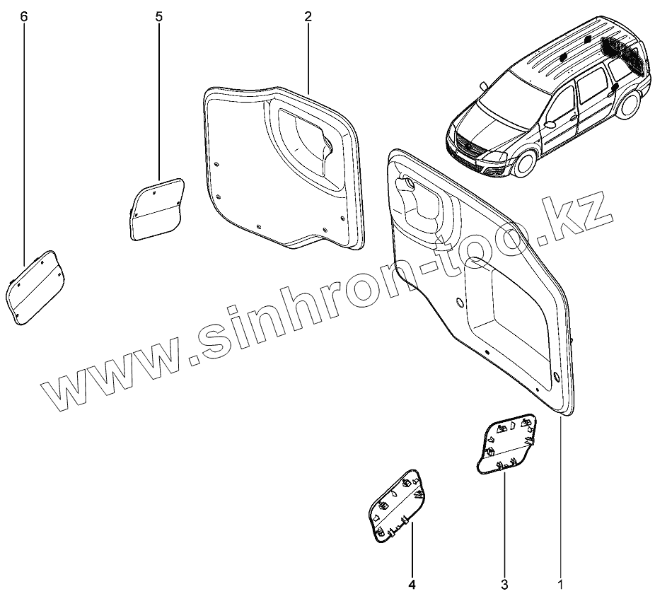Каталог запасных частей к технике: ВАЗ LADA Largus 4601. Обивка задних дверей