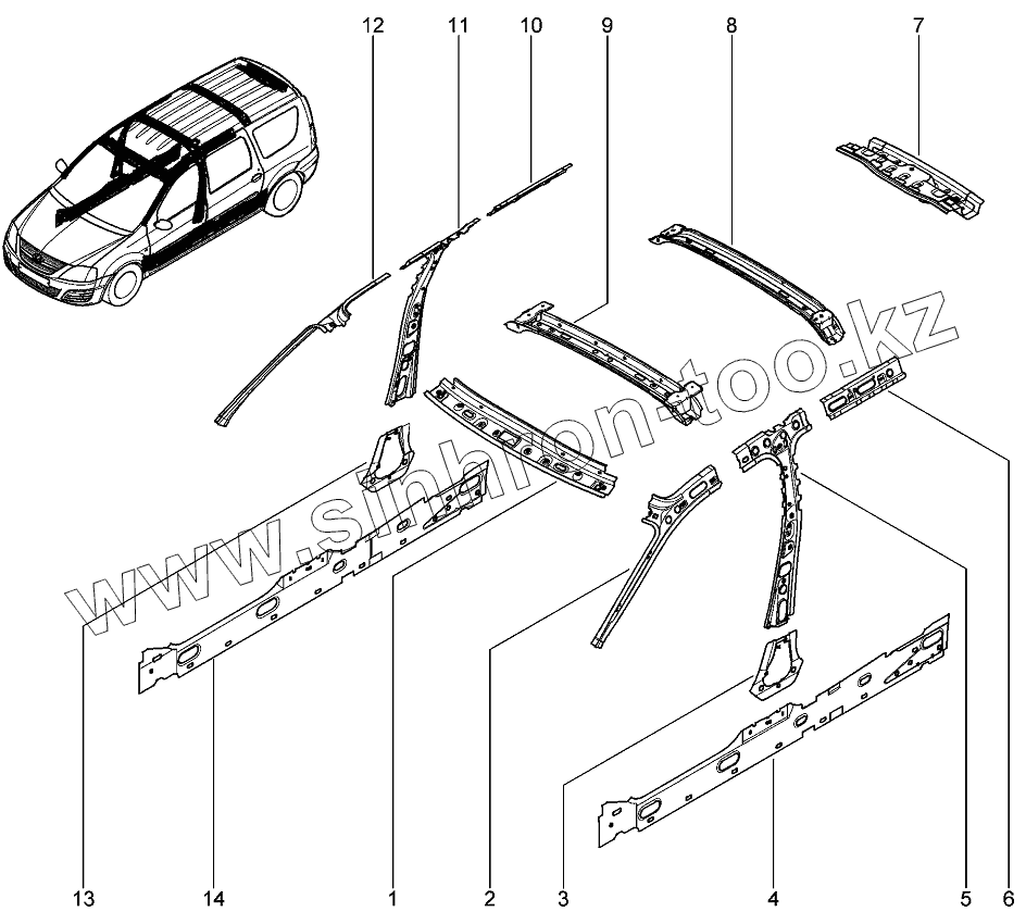 Каталог запасных частей к технике: ВАЗ LADA Largus 4601. Облицовка, поперечины