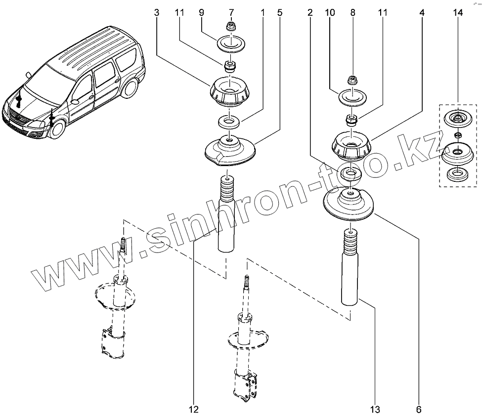 Каталог запасных частей к технике: ВАЗ LADA Largus 4601. Опора передней стойки