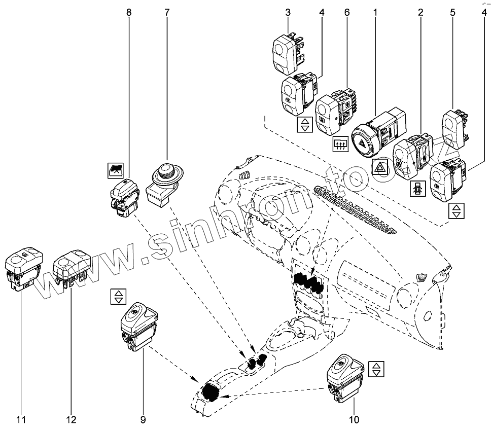 Выключатель задних электростеклоподъемников