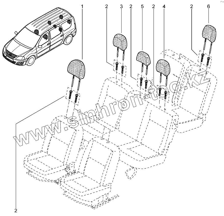 Каталог запасных частей к технике: ВАЗ LADA Largus 4601. Подголовники сидений