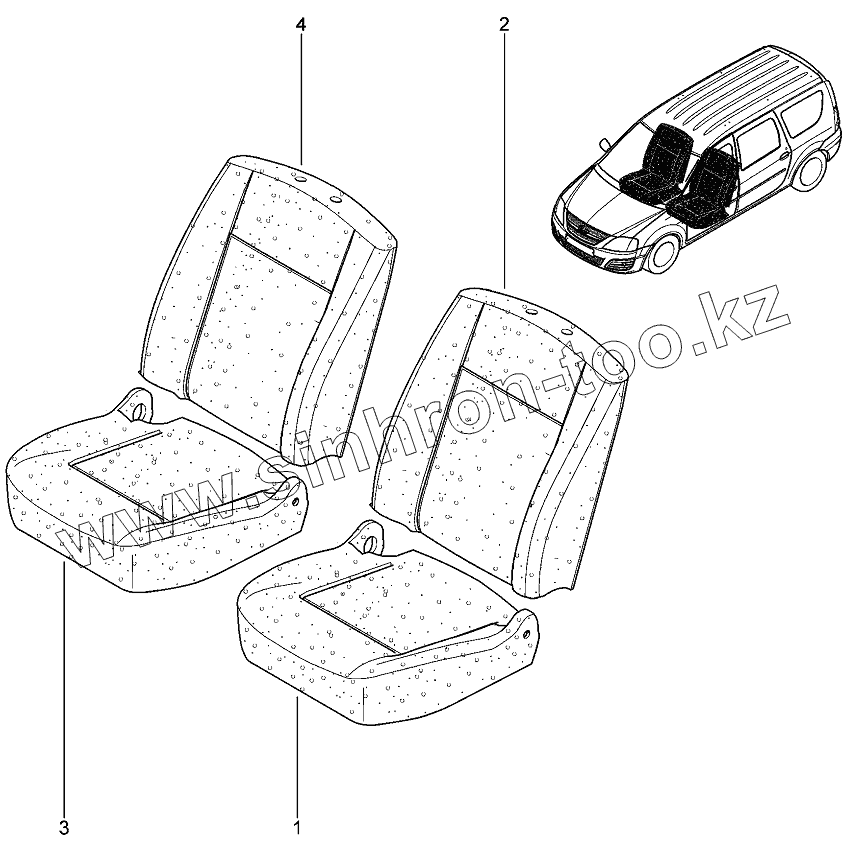 Каталог запасных частей к технике: ВАЗ LADA Largus 4601. Подушка, спинка передних сидений