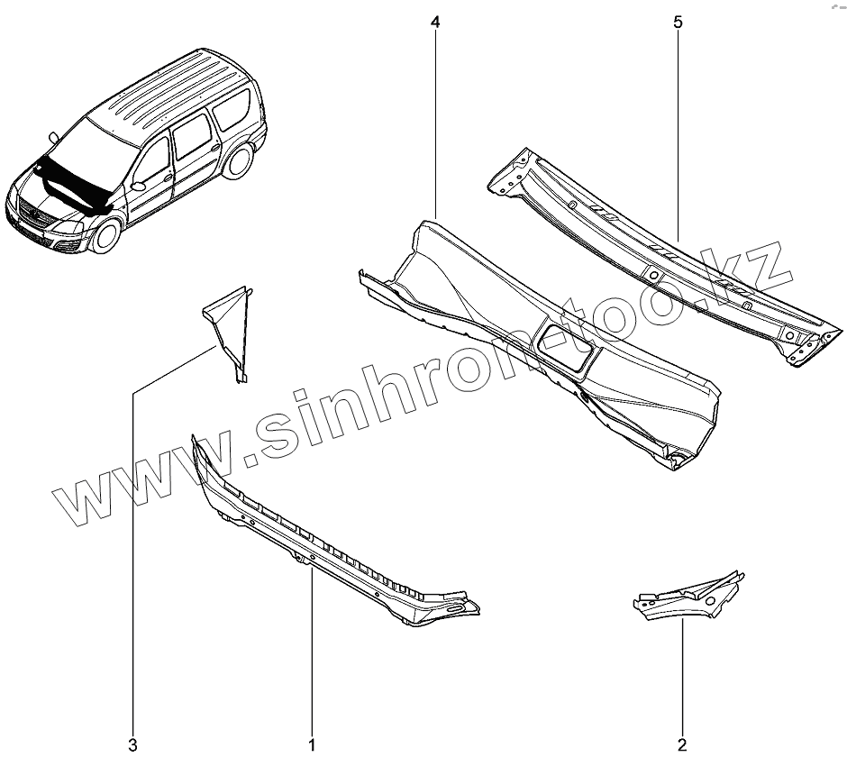Каталог запасных частей к технике: ВАЗ LADA Largus 4601. Поперечина центральная щитка передка