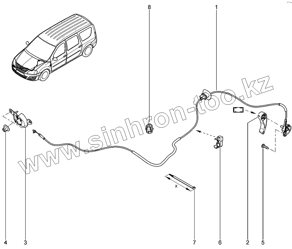 Каталог запасных частей к технике: ВАЗ LADA Largus 4601. Привод открытия капота