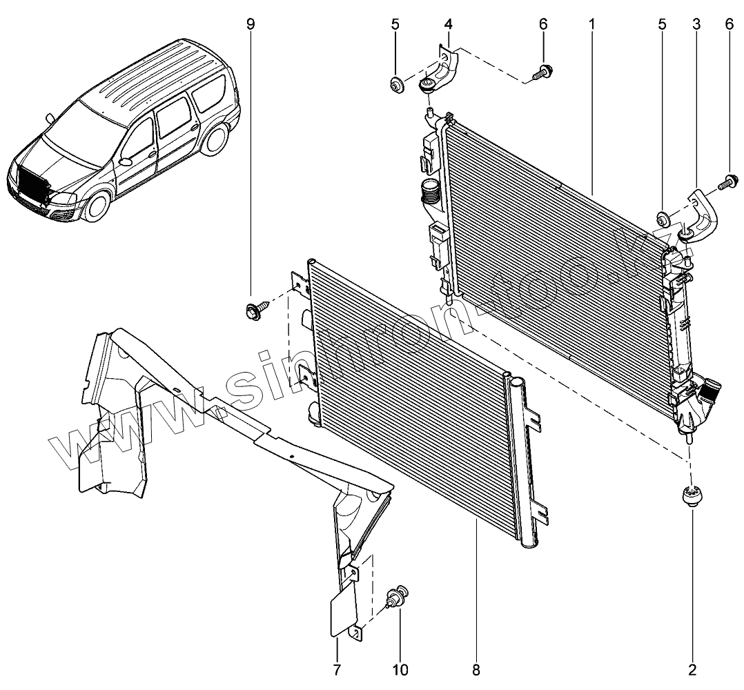 Каталог запасных частей к технике: ВАЗ LADA Largus 4601. Радиатор охлаждения двигателя