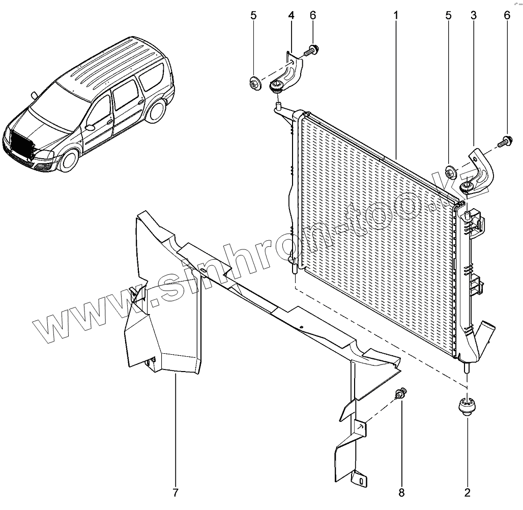 Каталог запасных частей к технике: ВАЗ LADA Largus 4601. Радиатор охлаждения двигателя
