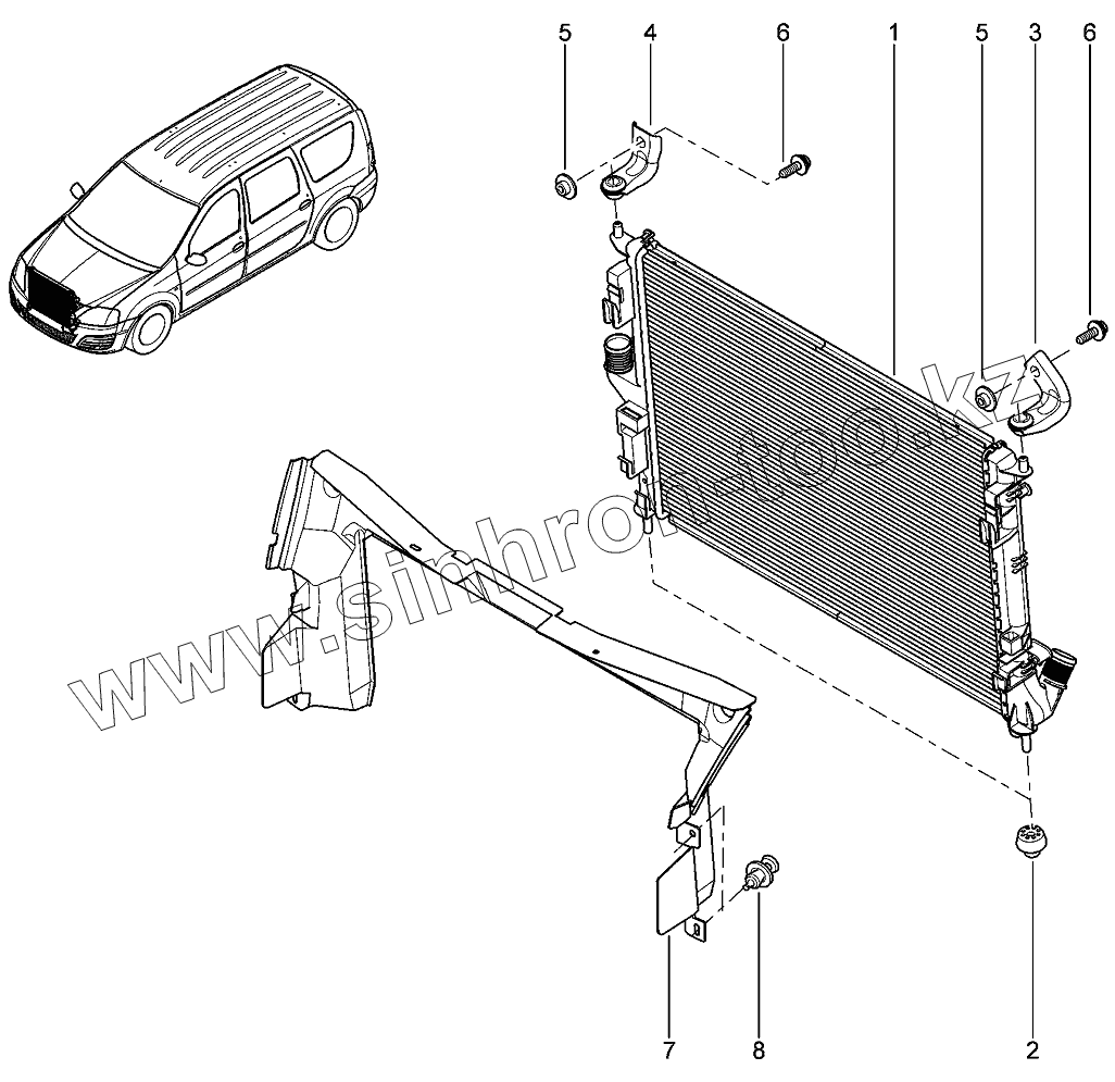 Каталог запасных частей к технике: ВАЗ LADA Largus 4601. Радиатор охлаждения двигателя