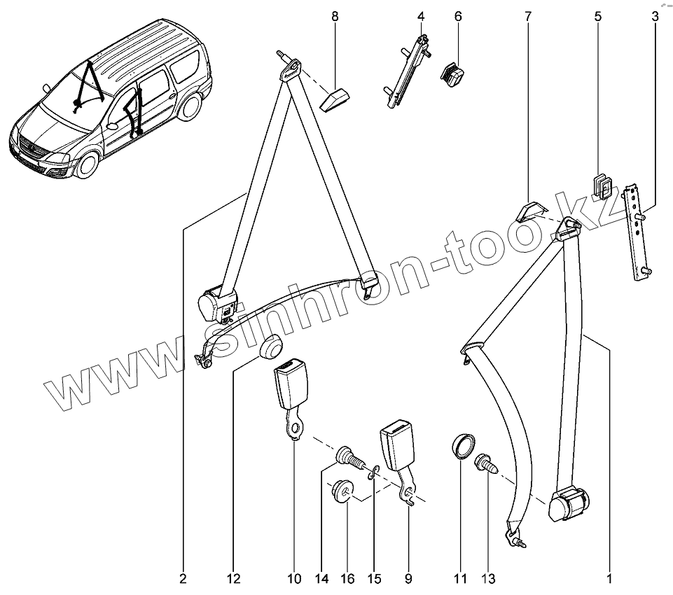 Каталог запасных частей к технике: ВАЗ LADA Largus 4601. Ремни безопасности передние