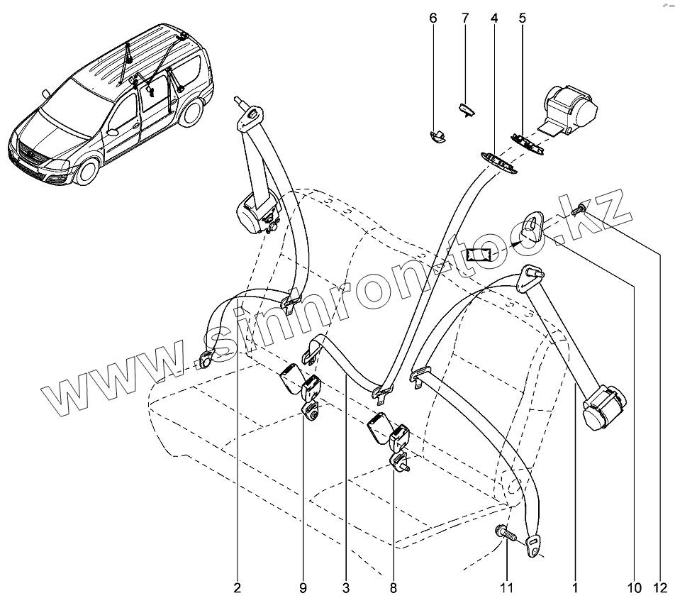 Каталог запасных частей к технике: ВАЗ LADA Largus 4601. Ремни безопасности задние