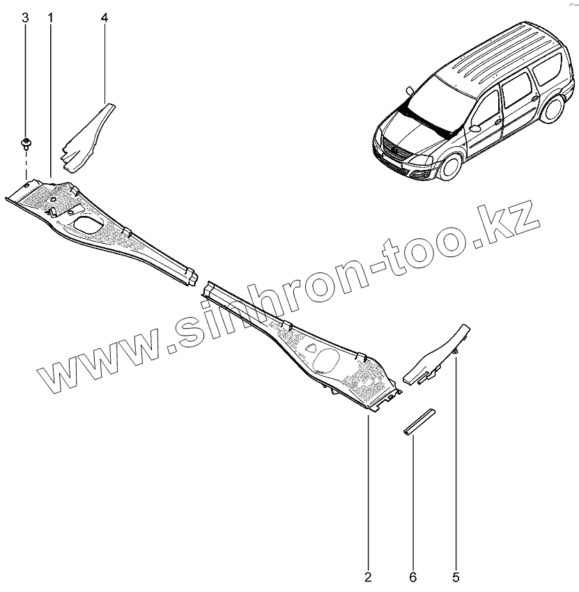 Каталог запасных частей к технике: ВАЗ LADA Largus 4601. Решетка водоотводящего короба