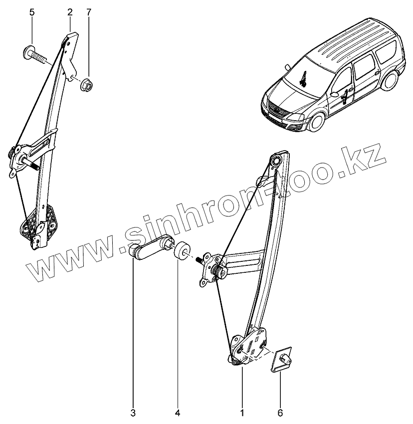 Каталог запасных частей к технике: ВАЗ LADA Largus 4601. Стеклоподъемник передних дверей (механический)