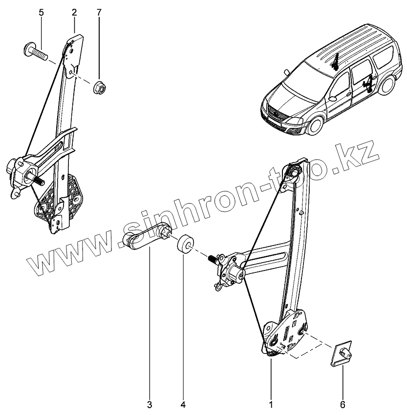Каталог запасных частей к технике: ВАЗ LADA Largus 4601. Стеклоподъемник задних дверей (механический)