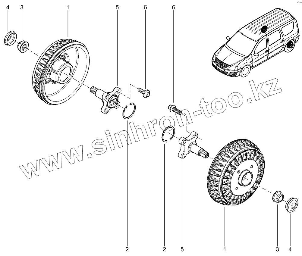 Каталог запасных частей к технике: ВАЗ LADA Largus 4601. Ступица и барабан заднего тормоза