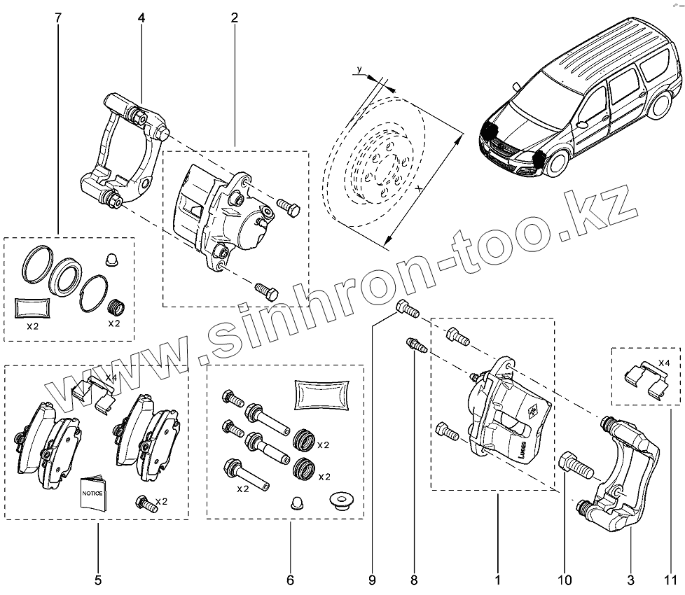 Каталог запасных частей к технике: ВАЗ LADA Largus 4601. Суппорт