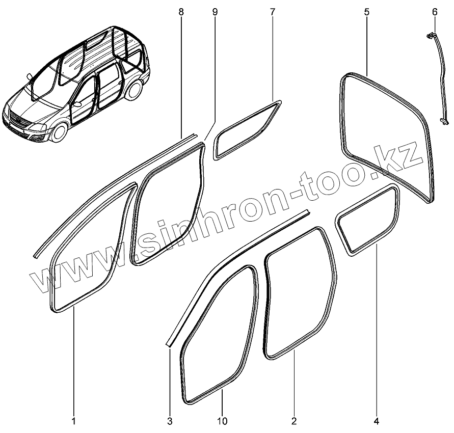 Каталог запасных частей к технике: ВАЗ LADA Largus 4601. Уплотнители стекол